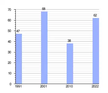 Cuenta con {{Indec|62|2022}, lo que representa un incremento del 63 % frente a los 38 habitantes (Indec, 2010) del censo anterior.[1]