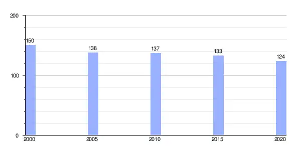 | Gráfica de evolución demográfica de Parga entre 2000 y 2020 |
