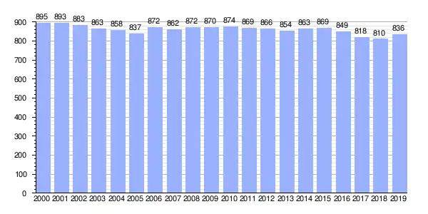 | Gráfica de evolución demográfica de San Saturnino (parroquia) entre 2000 y 2019 |