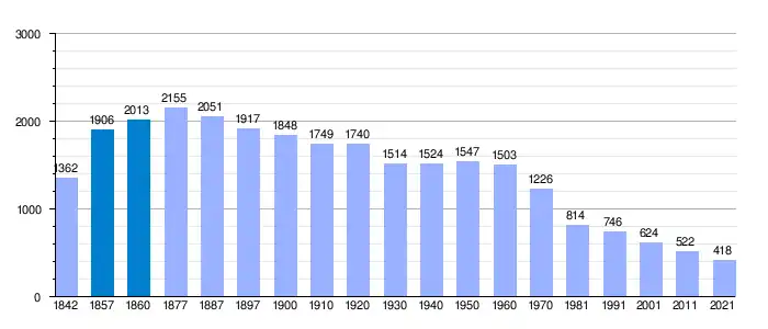 | Gráfica de evolución demográfica de San Tirso de Abres[4] entre 1842 y 2021 |