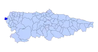 Se encuentra situado en la zona más occidental de la comunidad autónoma, rodeado en sus extremos norte, sur y oeste por territorio perteneciente a la provincia de Lugo, concretamente por Trabada al noroeste y por Puente Nuevo al sur, mientras que en su parte oriental limita con los concejos asturianos de Taramundi y Vegadeo. Su extensión ocupa un total de 31,36 km² en los que se encuentran censados 419 habitantes en el año 2021. Su principal vía de comunicación la configura la nacional N-640, articulándose varias carreteras y accesos rodados locales en torno a ella.