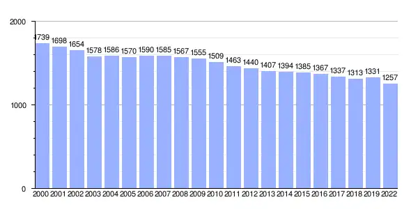 | Gráfica de evolución demográfica de San Valentín entre 2000 y 2022 |
