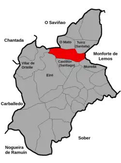 - ↑ a b 3745. «Decreto 6/2000, de 7 de enero, por el que se aprueba el nomenclátor correspondiente a las entidades de población de la provincia de Lugo.». Boletín Oficial del Estado n.º 47. España. 24 de febrero de 2000. pp. 8196-8236. Consultado el 3 de junio de 2021.