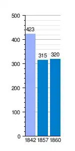 | Gráfica de evolución demográfica de San Vicente de León y Los Llares[2] entre 1842 y 1860 |
