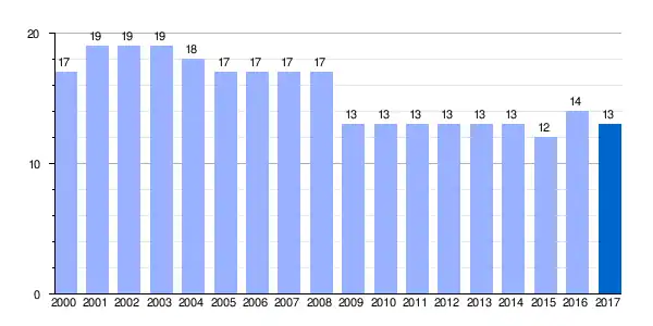 | Gráfica de evolución demográfica de Sanchogómez[3] entre 2000 y 2017 |