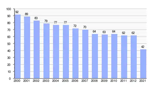 Gráfica de evolución demográfica de Sandoval de la Reina entre 2000 y 2021