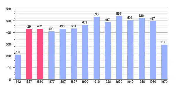 Gráfica de evolución demográfica de Sandoval de la Reina[20][21]​ entre 1842 y 1970