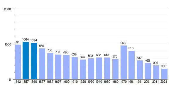 | Gráfica de evolución demográfica de Sangarcía[8] entre 1842 y 2021 |