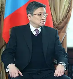 - ↑ «Mongolian parliament elects PM after turmoil» (en inglés). AFP. 11 de septiembre de 2008. Archivado desde el original el 20 de mayo de 2011. Consultado el 19 de mayo de 2009.