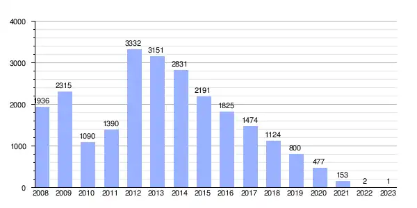 Deuda viva del Ayuntamiento de Sanlúcar la Mayor, en miles de euros, según datos del Ministerio de Hacienda.[12] |