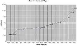 | Evolución demográfica de Sanlúcar la Mayor[11] | |||||||||||||||||||