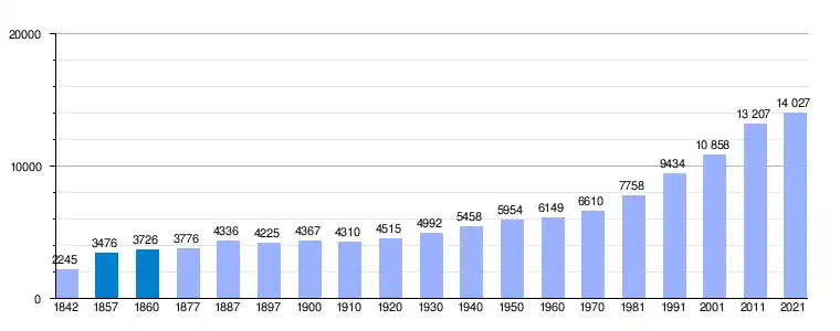 | 1675 | 1787 | 1842 | 1860 | 1877 | 1887 | 1897 | 1900 | 1910 | 1920 | 1930 | 1940 | 1950 | 1960 | 1970 | 1981 | 1991 | 2001 | 2011 | 2021 |