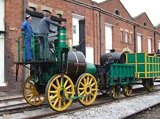 ![]() La locomotora original, conservada en el Museo Nacional del Ferrocarril de Shildon | ||