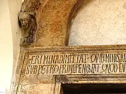 Menne CONFESSORIS Fueron colocadas en la urna, separadas de la primera, otras reliquias, especialmente las de San Brizio, obispo de Tours y San miembro (o Sossius) mártir de Miseno. De hecho, en el reverso de la misma lápida está escrito: