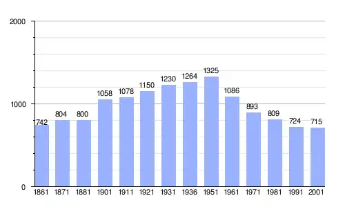 | Gráfica de evolución demográfica de Sant'Agata del Bianco entre 1861 y 2001 |