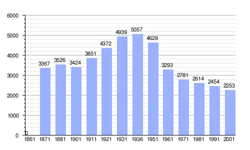 Gráfica de evolución demográfica de Sant'Urbano entre 1861 y 2001