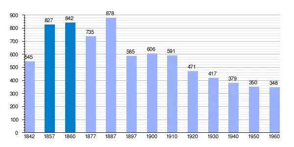 | Gráfica de evolución demográfica de Sant Salvador de Toló[2] entre 1842 y 1960 |