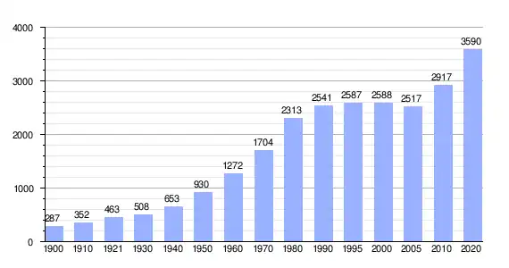 En 2020 registró una población de 3590 personas, lo que corresponde al 3.12 % de la población municipal.[8] De los cuales 1741 son hombres y 1849 son mujeres.[8]