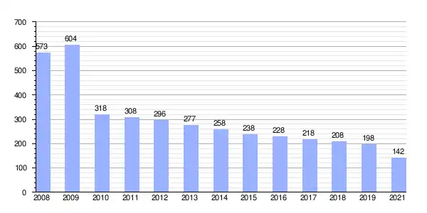 | Gráfica de evolución de Deuda viva del Ayuntamiento de Santa Ana la Real entre 2008 y 2021 |