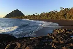 Playa Santa Bárbara, y al fondo el morro Vilcún.