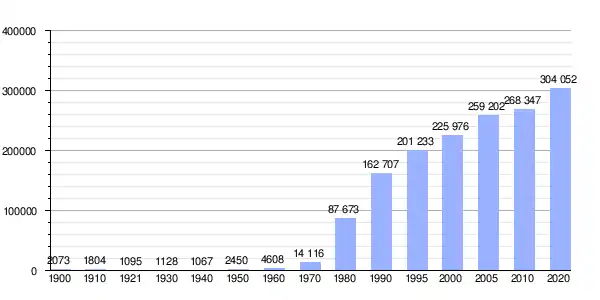 | Gráfica de evolución de Santa Catarina entre 1900 y 2020 |