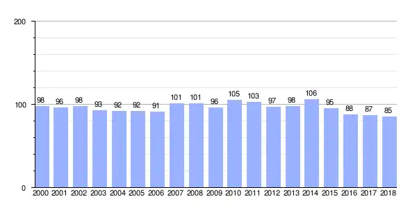 | Gráfica de evolución demográfica de Santa Icía entre 2000 y 2018 |