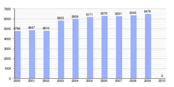 | Gráfica de evolución demográfica de Jubia entre 2000 y 2010 |