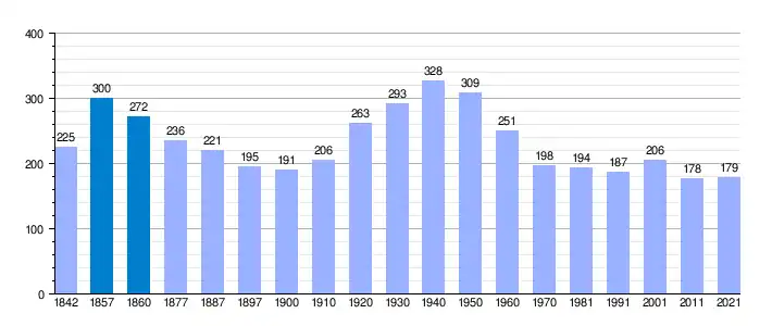 | Gráfica de evolución demográfica de Santa Cecilia de Voltregá[3] entre 1842 y 2021 |