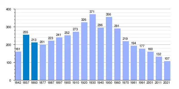 | Gráfica de evolución demográfica de Santa Cecilia del Alcor[1] entre 1842 y 2021 |