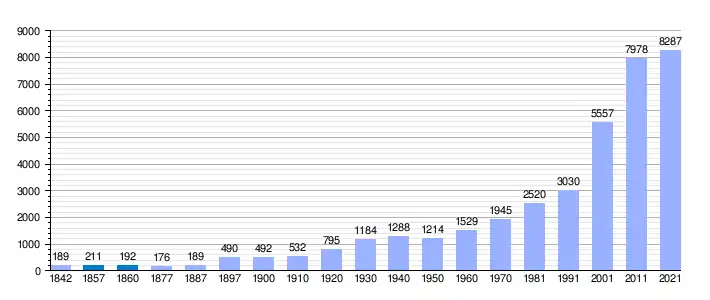 | Gráfica de evolución demográfica de Santa Coloma de Cervelló[2] entre 1842 y 2021 |