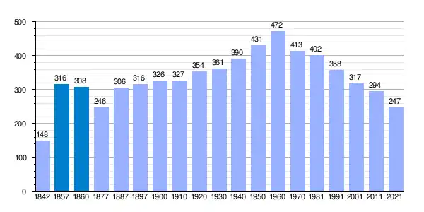 | Gráfica de evolución demográfica de Santa Colomba de las Monjas[8] entre 1842 y 2021 |