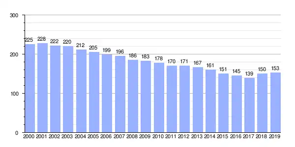 | Gráfica de evolución demográfica de Fecha entre 2000 y 2019 |
