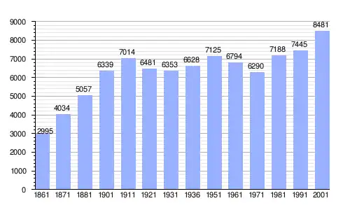 | Gráfica de evolución demográfica de Santa Croce Camerina entre 1861 y 2001 |