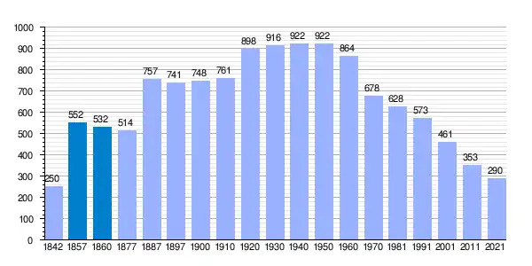 | Gráfica de evolución demográfica de Santa Croya de Tera[10] entre 1842 y 2021 |