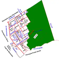 Se encuentra ubicado entre los sectores La Gloria al norte y al oeste (Av Intercomunal), El Carmen al este (calle Oriental) y Santa Clara al sur (calle San Mateo).