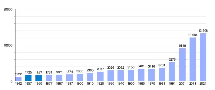 | Gráfica de evolución demográfica de Santa Cruz de Bezana[3] entre 1842 y 2021 |