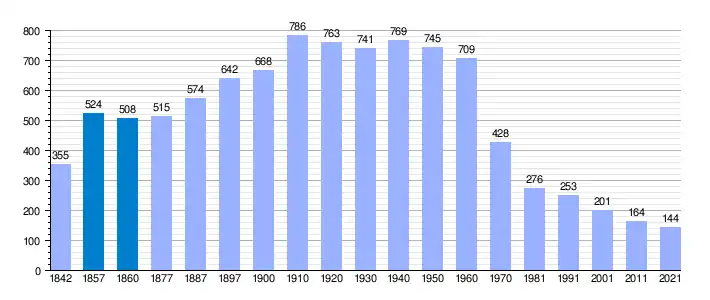 | Gráfica de evolución demográfica de Santa Cruz de Pinares[3] entre 1842 y 2021 |