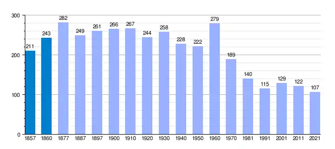 | Gráfica de evolución demográfica de Santa Eulalia Bajera[4] entre 1857 y 2021 |