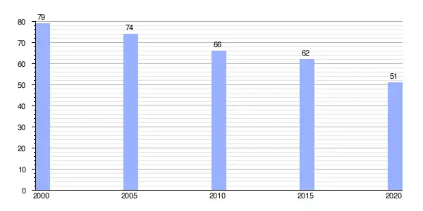 | Gráfica de evolución demográfica de Bóveda (aldea) entre 2000 y 2020 |