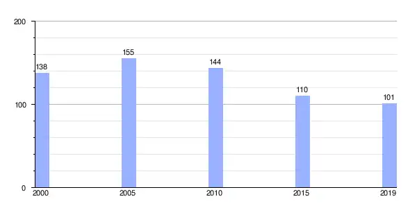 | Gráfica de evolución demográfica de Búbal entre 2000 y 2019 |