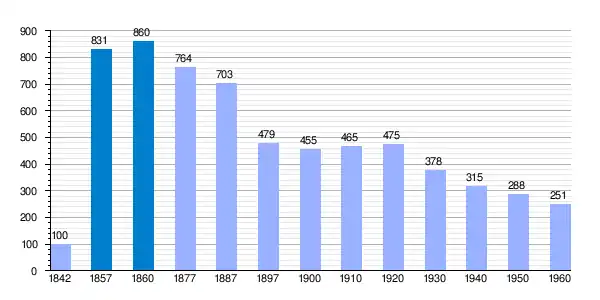 Gráfica de evolución demográfica de Santa Liña[3]​ entre 1842 y 1960