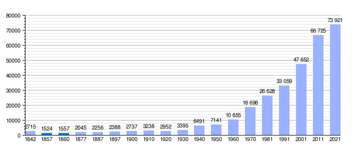 | Gráfica de evolución demográfica de Santa Lucía de Tirajana[11] entre 1842 y 2021 |