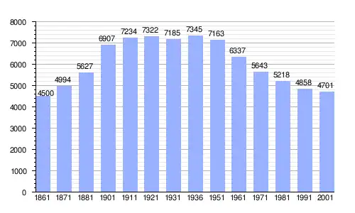 | Gráfica de evolución demográfica de Santa Lucía del Mela entre 1861 y 2001 |