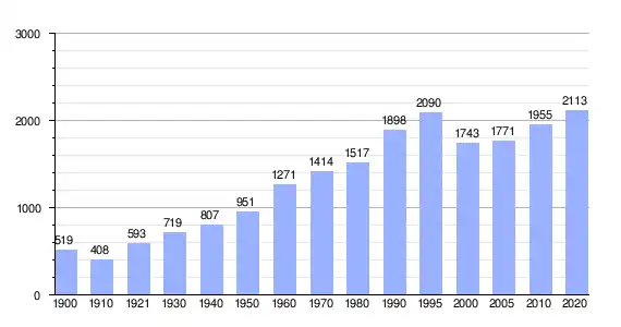 En 2020 registró una población de 2113 personas, lo que corresponde al 16.30 % de la población municipal.[12] De los cuales 1024 son hombres y 1089 son mujeres.[12] Tiene 5177viviendas particulares habitadas.[12]