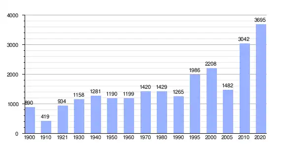 En 2020 registró una población de 3695 personas, lo que corresponde al 2.20 % de la población municipal.[7] De los cuales 1728 son hombres y 1967 son mujeres.[7]