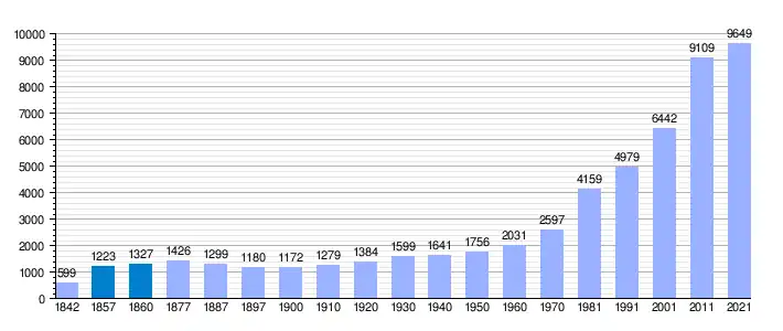| Gráfica de evolución demográfica de Santa María de Palautordera[5] entre 1842 y 2021 |