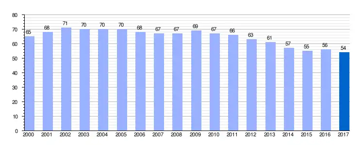 | Gráfica de evolución demográfica de Santa María Tajadura entre 2000 y 2017 |
