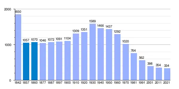 Población de derecho según los censos de población del INE. Población de hecho según los censos de población del INE. En 1857 disminuye el término del municipio porque independiza a Las Omañas.[7] |