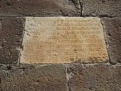 La lápida a la que se ha hecho mención informa además de que la dedicación fue oficiada por el obispo Juan de León, con asistencia del abad de Sahagún, Don Gutierre, y del prior de Piasca, Pedro, y que fue el maestro de la obra un tal Covaterio.