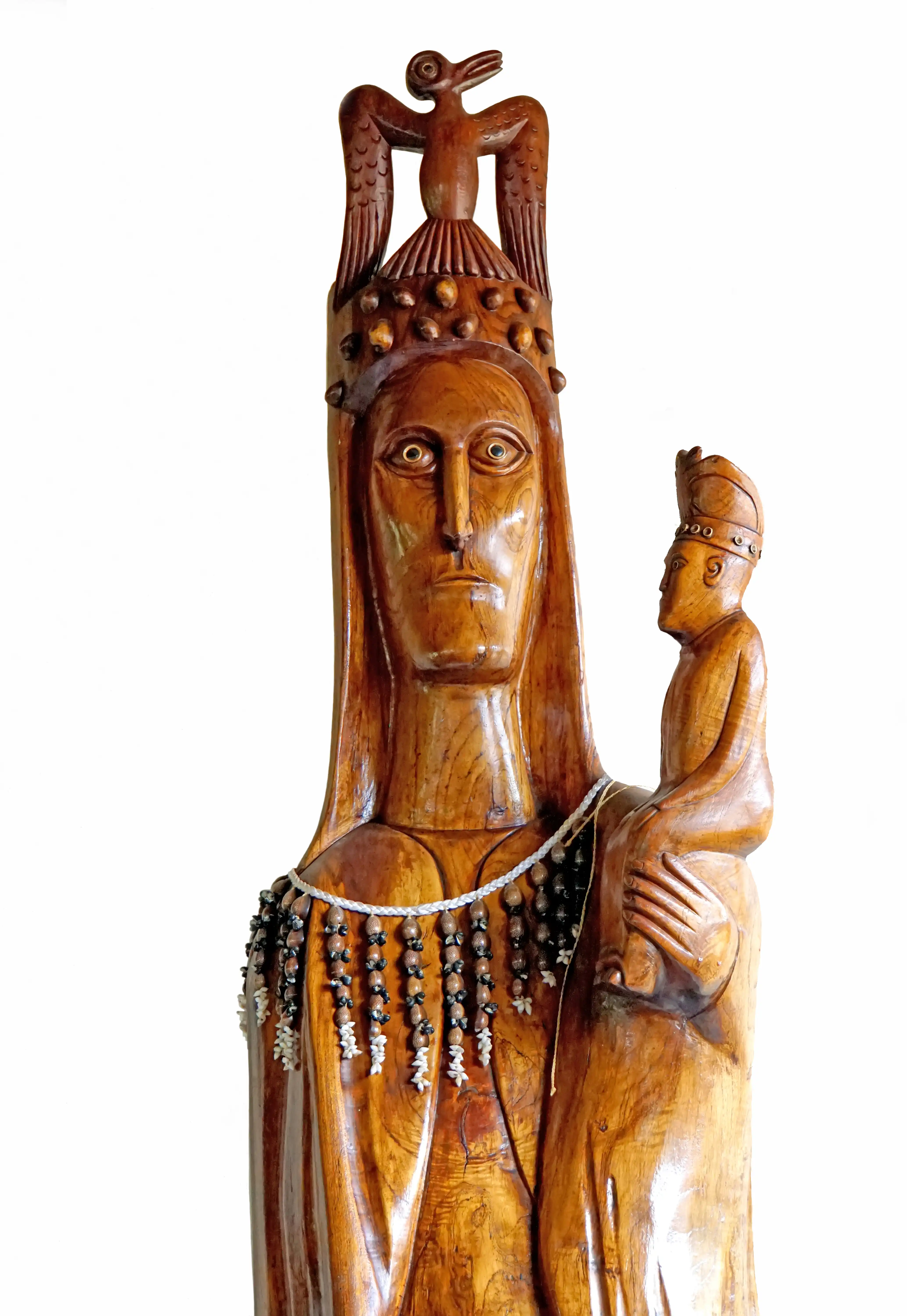 La figura es realizada en mayo de 1970, tallada por los artesanos León Tuki Hey y su sobrino Benedicto Tuki Tepano, originarios de Rapa Nui, siendo considerada la primera escultura cristiana realizada en la isla. A ésta le siguieron otras imágenes como el llamado Cristo de Rapa Nui (que representa el sincretismo entre la mitología pascuense y la religión católica), San Miguel Arcángel, el Sagrado Corazón de Jesús, etc. Por esta razón, Santa María de Rapa Nui es considerada popularmente como la santa patrona de la isla de Pascua.